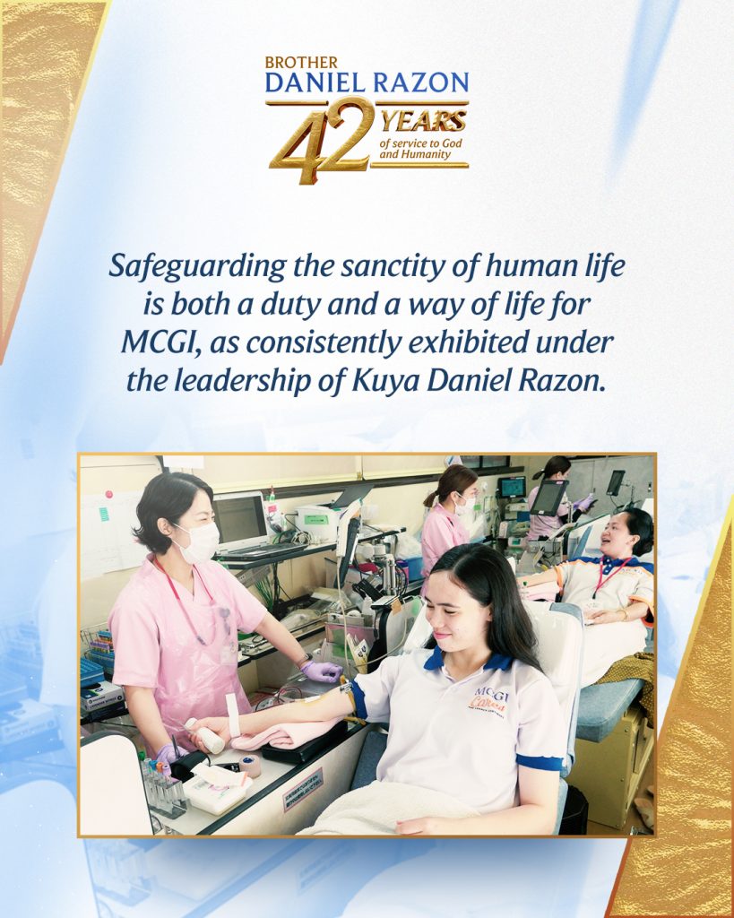 We know that we have no power to save our own lives, let alone the lives of others. Yet, Kuya Daniel Razon encourages us to be God’s humble instruments in protecting the well-being of others, just as the Holy Bible instructs. We freely offer our very lifeblood to help sustain the lives of our fellow men—either by donating a portion of our time (which is part of our life) or by literally donating our blood. To a brother or sister who has truly felt the love of God, such sacrifices are done without reservation.
