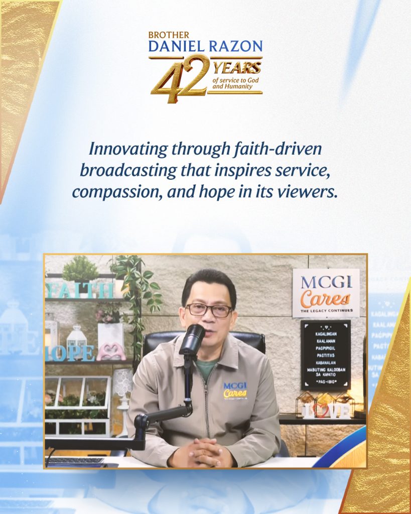 Drawing on his decades of experience in the broadcast industry, Brother Daniel Razon fully dedicated this expertise to proclaiming the good news of our Lord Jesus Christ as the MCGI Overall Servant.