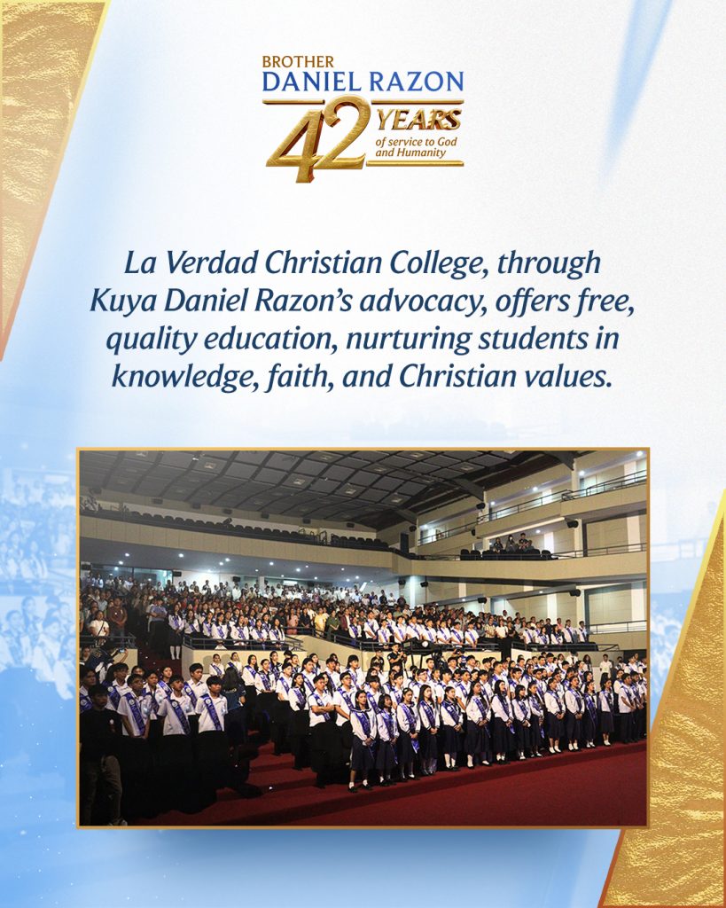 Kuya Daniel Razon’s Free Education Program, offered through the Apalit and Caloocan City campuses of La Verdad Christian School, opens doors for deserving students to experience high-quality learning without the burden of financial concerns. This humanitarian initiative, strives to nurture not only the minds of young learners but also their hearts.