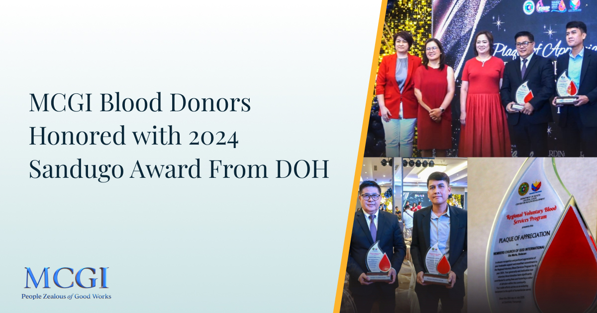 For their dedication to voluntary blood donation, the Members Church of God International (MCGI) Bulacan Chapter earned the 2024 Sandugo Award from the Department of Health (DOH)–Central Luzon on August 5, 2025.