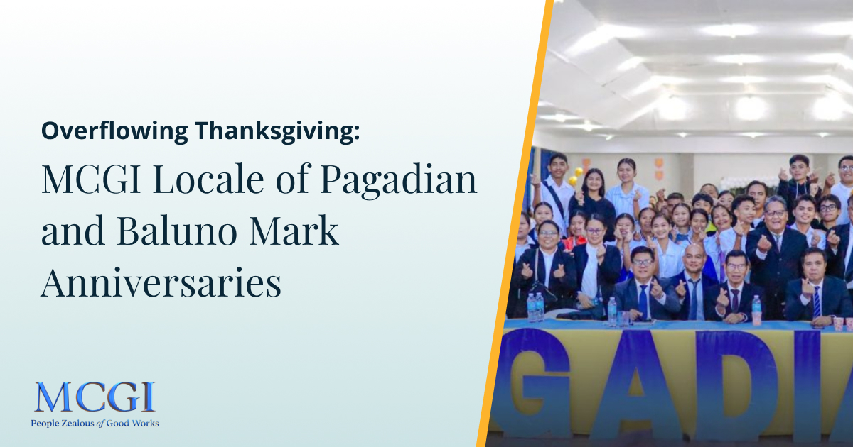 The MCGI Locales of Pagadian and Baluno celebrate their 20th and 8th anniversaries with a joint Thanksgiving. Discover their inspiring story of perseverance, steady growth, and unwavering faith from humble beginnings in Zamboanga del Sur.