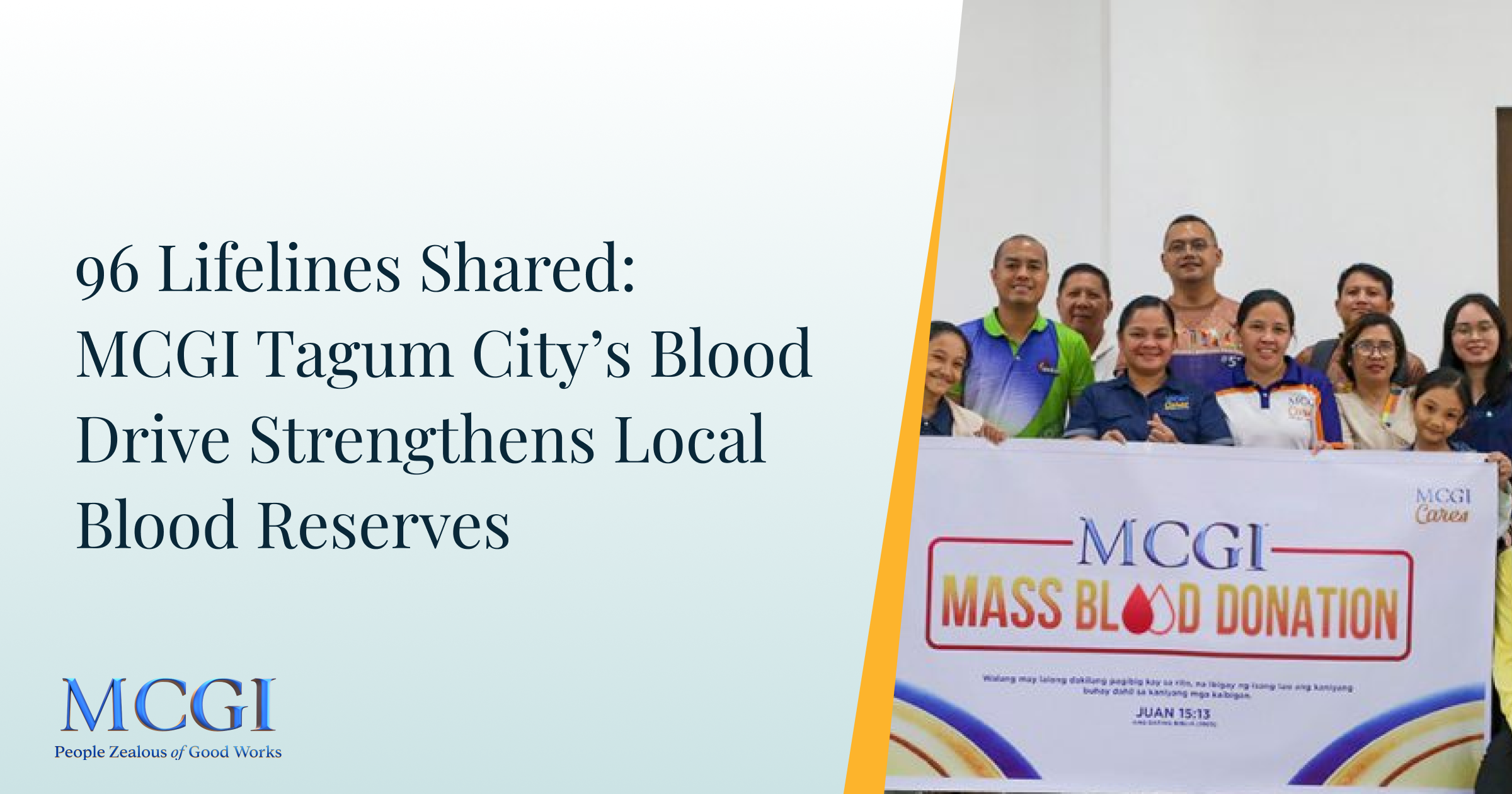 On December 15, 2025, as part of the quarterly commitment of the Members Church of God International (MCGI), a Mass Blood Donation drive was successfully held at the MCGI Tagum City Chapter in Davao del Norte. Out of 103 registered participants, 96 donors successfully shared the gift of life.